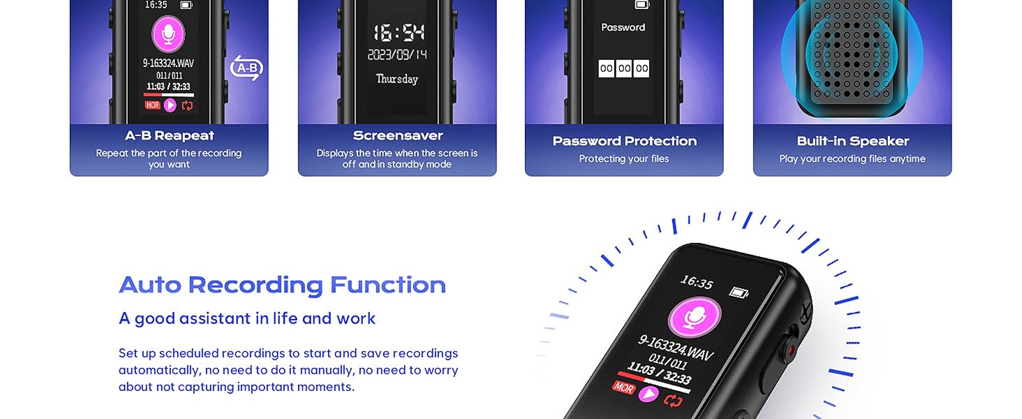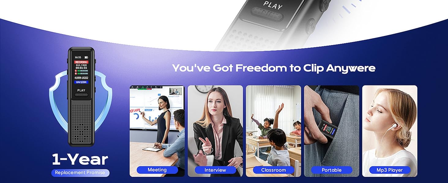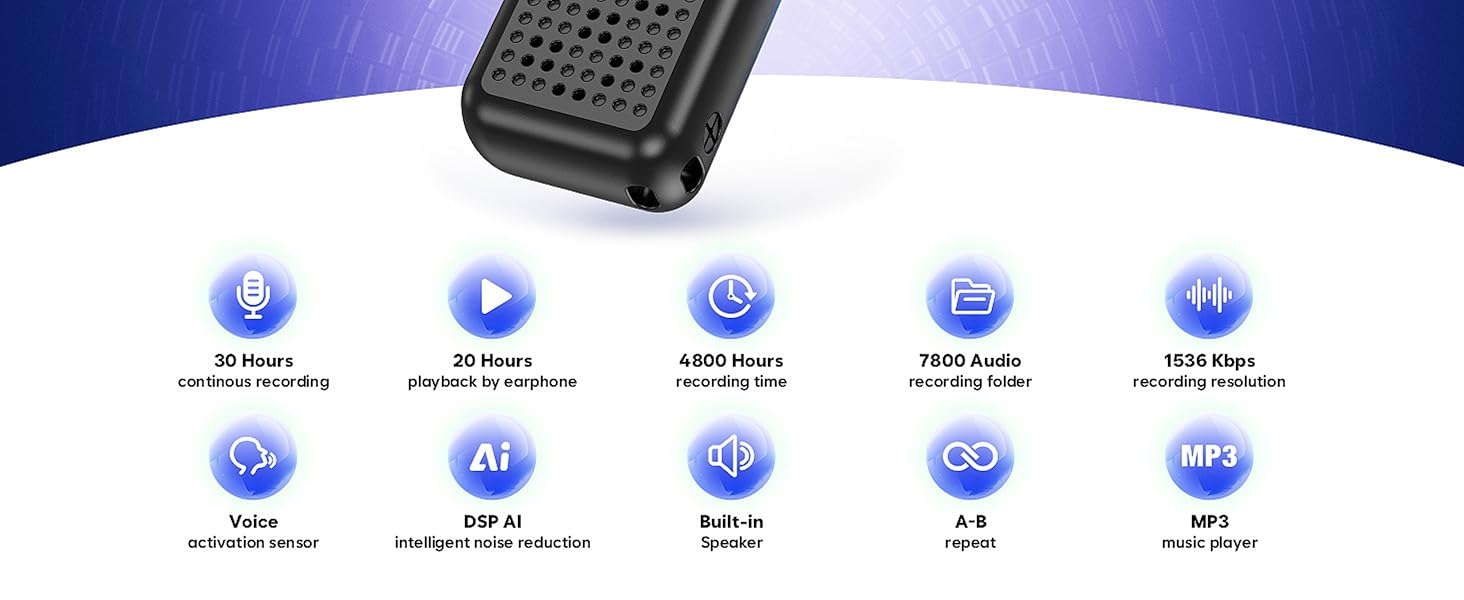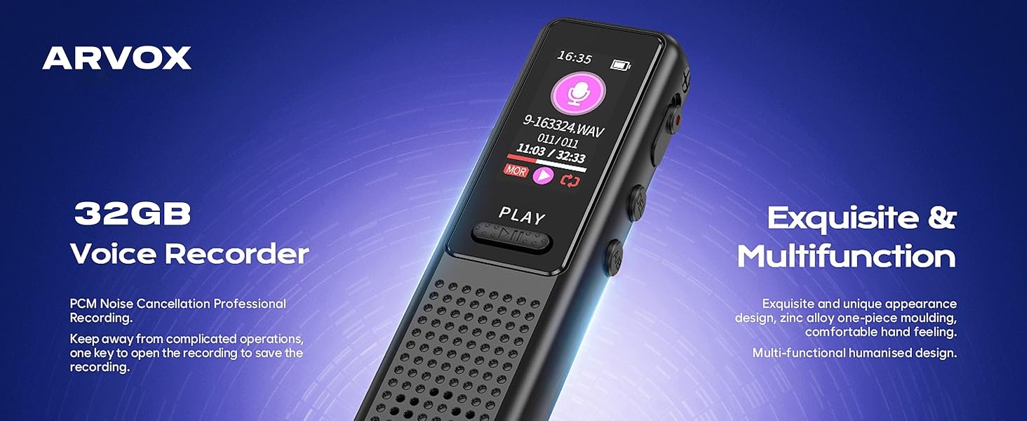 Arvox 32GB Voice Recorder Device with AI Noise Reduction & Mp3 Player with Earphones,Audio Recording Device/Voice Recorder Mic Upto 50 Hours for Meetings/Lectures (Black)