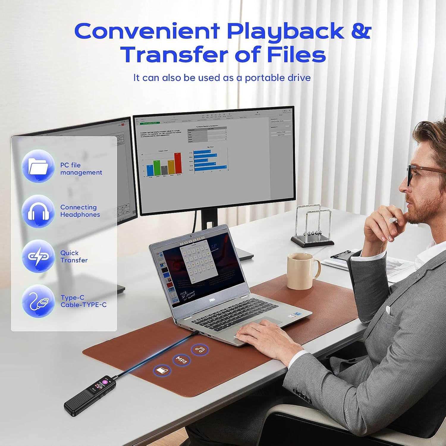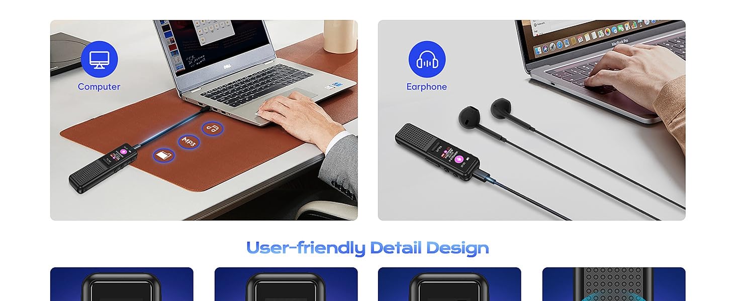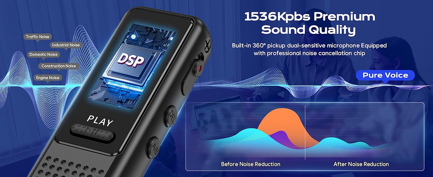 Arvox 32GB Voice Recorder Device with AI Noise Reduction & Mp3 Player with Earphones,Audio Recording Device/Voice Recorder Mic Upto 50 Hours for Meetings/Lectures (Black)