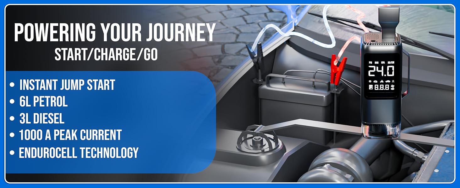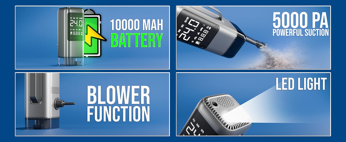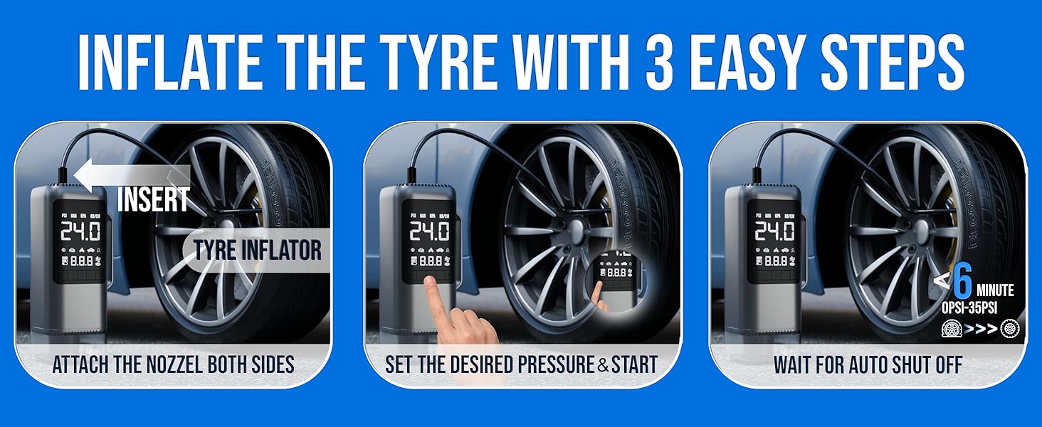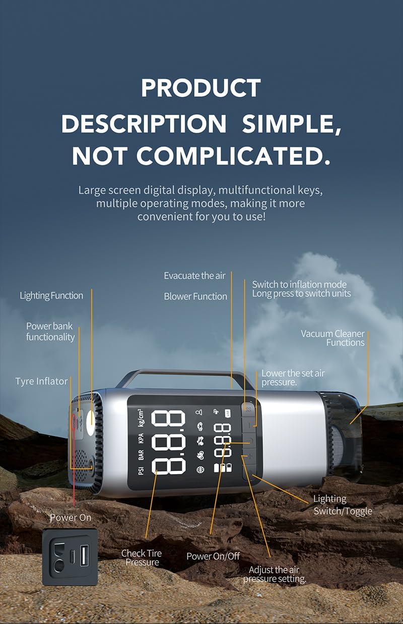 ARVOX 6 in 1 Tyre Inflator for Car,Bike with Car Battery Jump Starter,Vaccum Cleaner & Power Bank,3X Faster Inflation Air Inflator Pump(10,000 mAH)(Grey), 23 Liters Per Minute