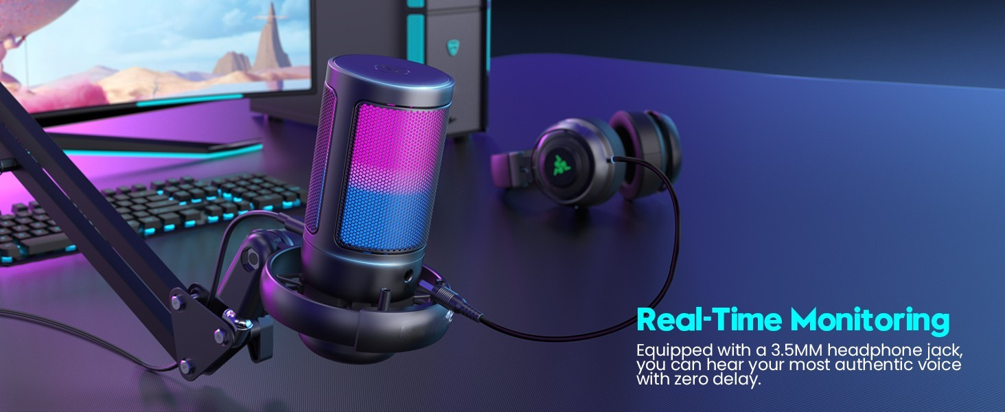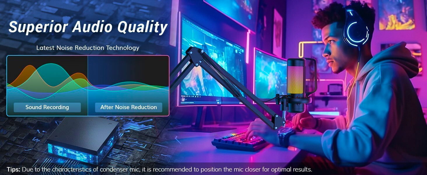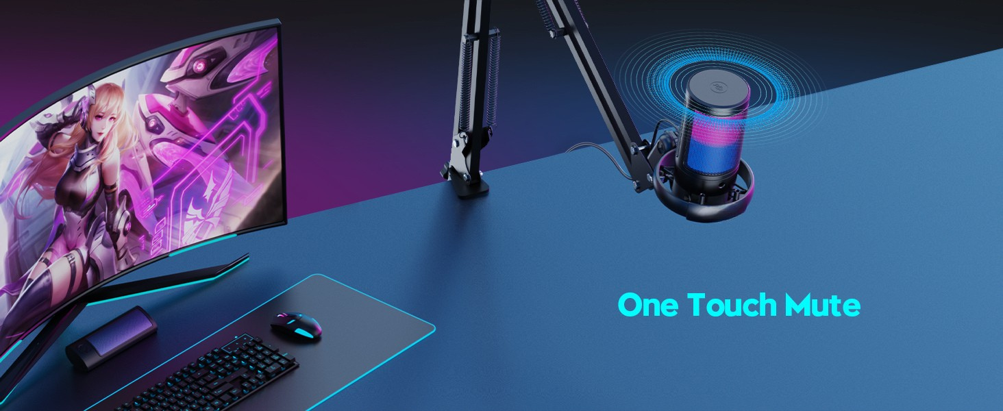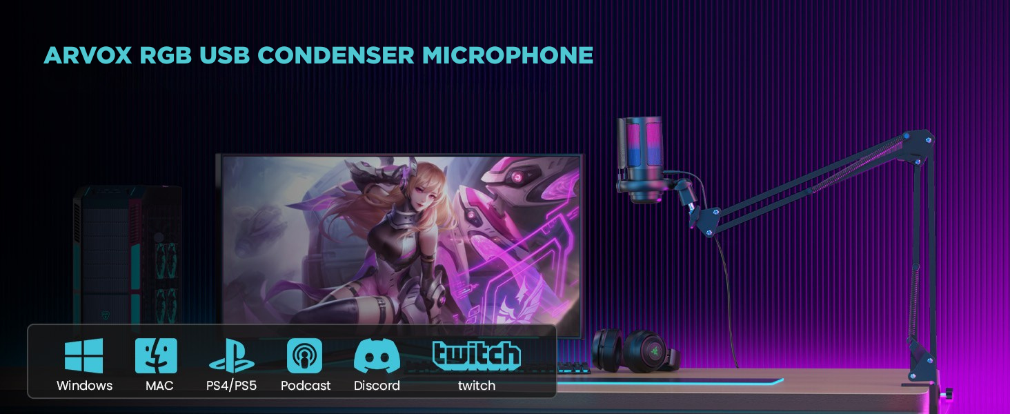 ARVOX AX-M6 RGB USB Professional Condenser Microphone Kit| Quick Mute, 192kHz/24bit with Boom Arm, Pop Filter, Shock Mount, Tripod, for Podcasting, Gaming, Singing | Mac/PC/Mobile/Laptop/PS4/5